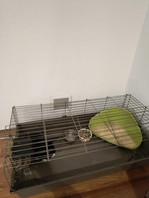 Sprzedam królika czarno biały domowy razem z klatką cena 320 zł do lekkiej negocjacji